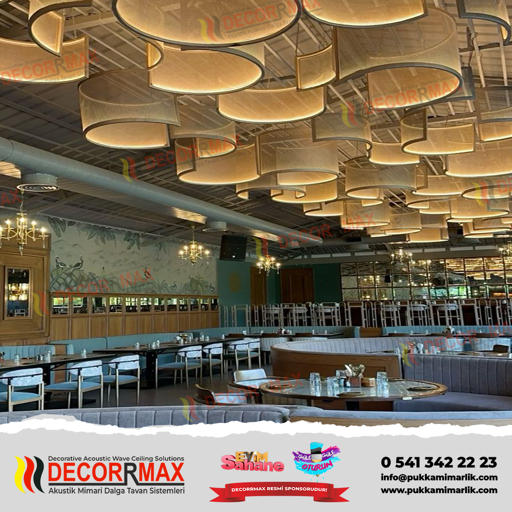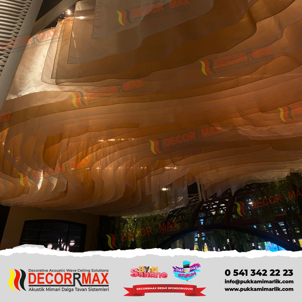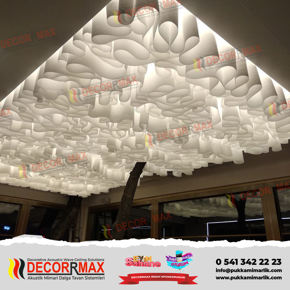 Akustik dalga tavan ve Drop Paper uygulamalarımızla tamamlanan projelerimizi keşfedin. Her biri estetik ve fonksiyonelliği bir araya getiren özel çözümler sunar.